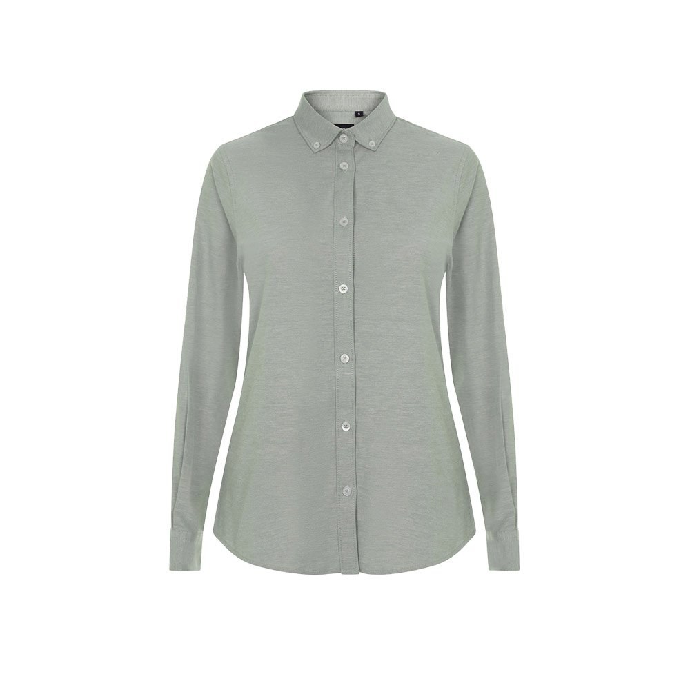 Stretch-Oxfordhemd (180 g/m²) mit langen Ärmeln für Damen aus Baumwolle (50 %), Polyester (45 %) und Elasthan (5 %). Größen: XS, S, M, L, XL, 2XL
