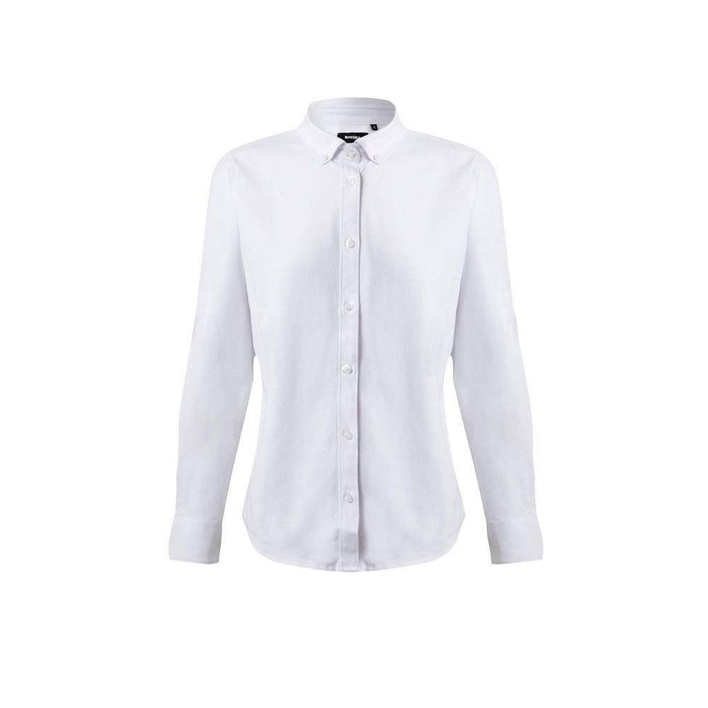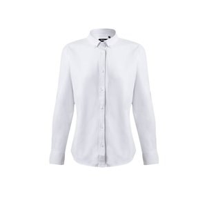 Stretch-Oxfordhemd (180 g/m²) mit langen Ärmeln für Damen aus Baumwolle (50 %), Polyester (45 %) und Elasthan (5 %). Größen: XS, S, M, L, XL, 2XL